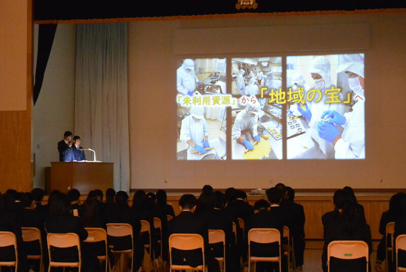 キャリア教育の一環として、2学年が各事業所で体験した内容や学びについて、振り返りを行うことで進路活動に向き合うとともに、1学年は次年度のインターンシップに向けて考える機会となりました。